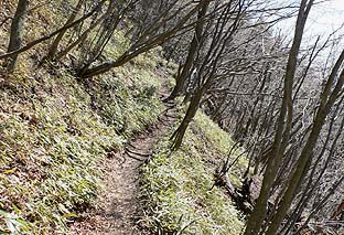 ← | カタクリはまだ芽が出た程度が多い ※小河内峠を過ぎしばらく登った辺りから現れる |
