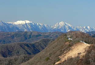 ← | 鷹ノ巣山頂直下から南ア(甲斐駒・仙丈)を見る ※右下の防火帯は日陰名栗峰 |