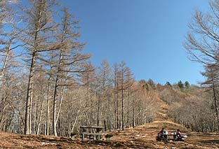 鷹ノ巣避難小屋前の防火帯 ※雪は全くない |
