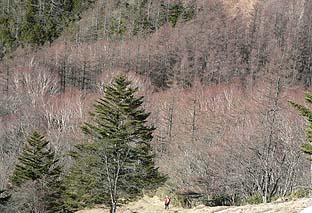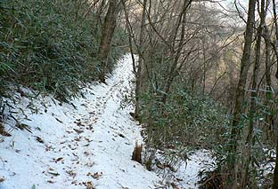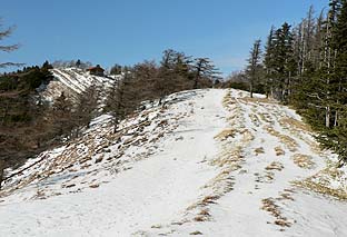 唐松谷への道には雪が残る ※ブナ坂下の最上部 |