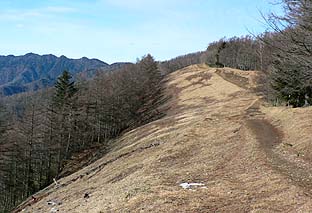 ← | 日陰名栗峰山頂脇の防火帯 ※ここは広く、南面はよく開けている |