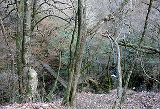 ← | 唐松谷にかかる吊り橋 ※この橋を渡るとひと登りで日原林道に出る |